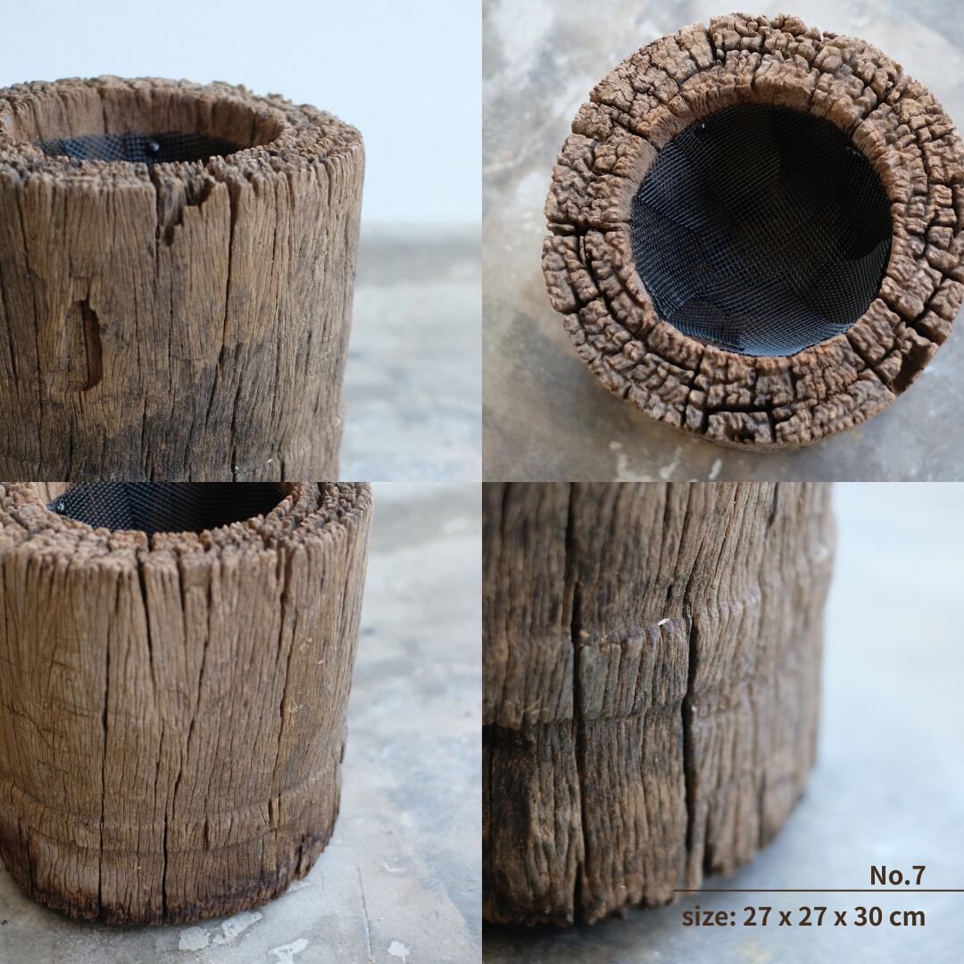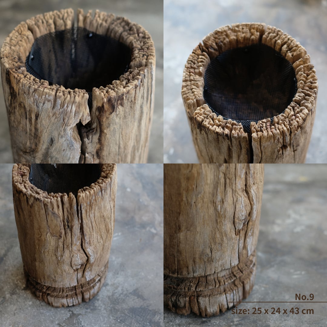 天然の古材を使用しているため、サイズ・形状・色味・ひび割れの入り方には個体差がございます。虫食い跡や欠けなども素材の特性としてご理解ください。経年とともに変化していく表情も、この素材ならではの魅力としてお楽しみください。