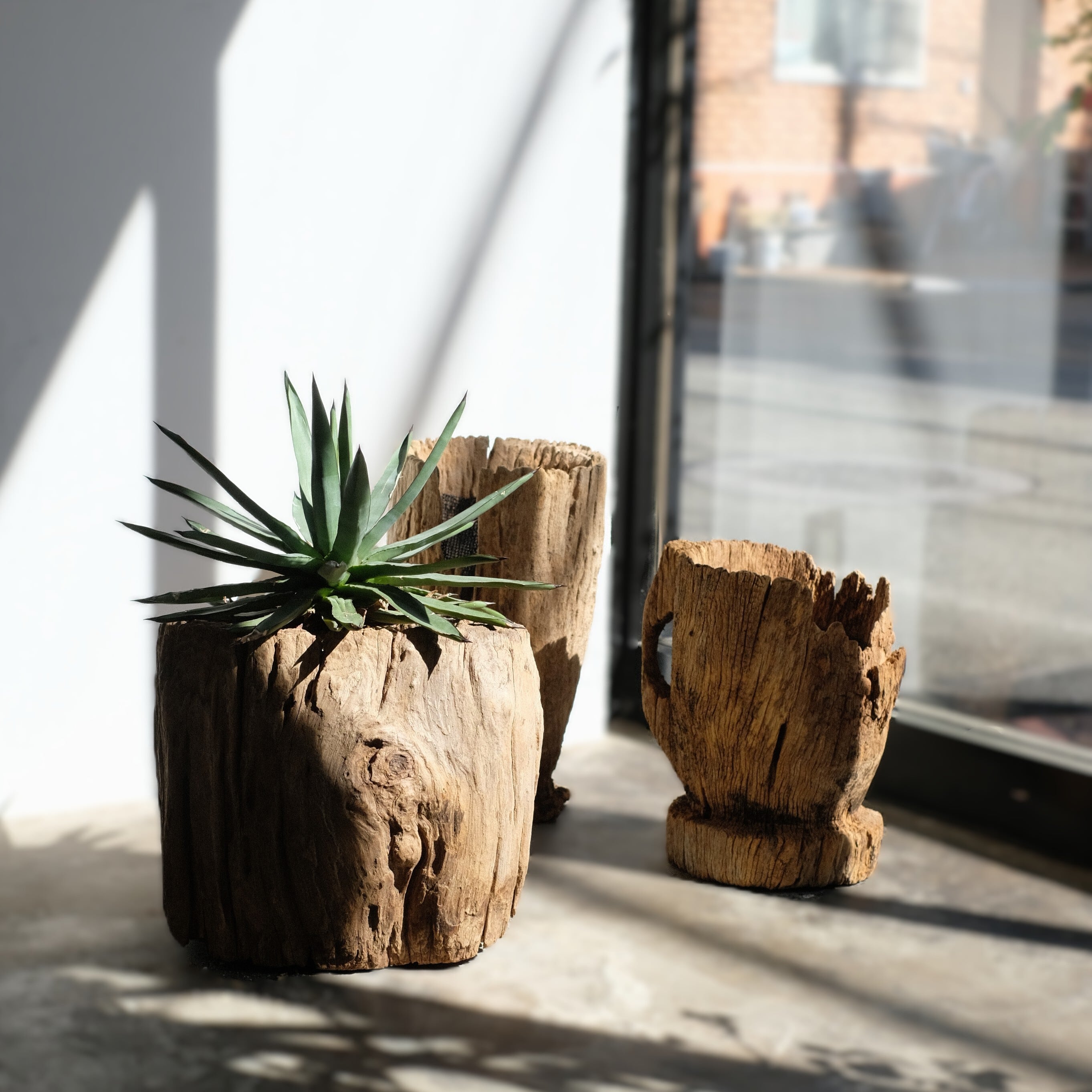 時間の流れを感じさせる古材と、今を生きる植物。