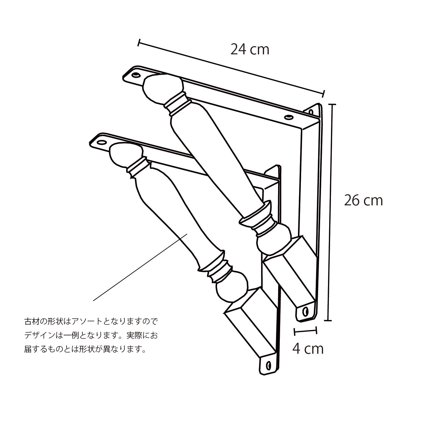 古材はアソートとなり、太さやデザインが一つずつ異なります。